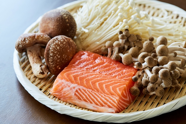 ビタミンDは、骨やカルシウムの代謝に必要な脂溶性ビタミンです。食べ物から摂取するほか、日光を浴びると皮膚の中でも作り出すことができます。