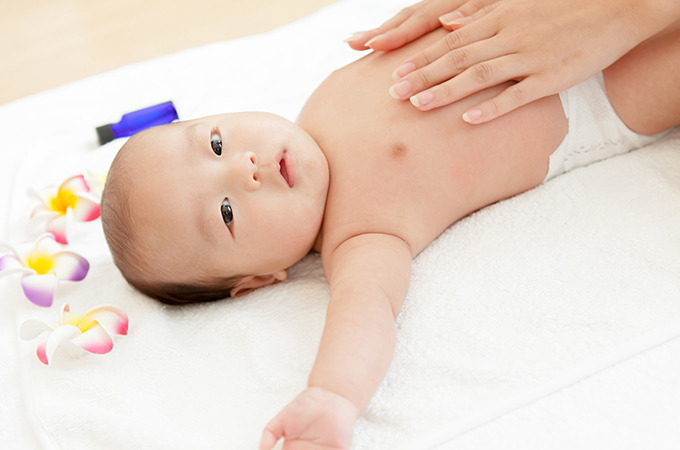 スキンケアをする時は、バリア機能が未熟な赤ちゃんの肌に刺激を与えないように気をつける必要があります。特に、肌をこすると微細な傷や湿疹の原因になり、乱れた角質層からアレルゲンが入り込む場合も…。洗う時はゴシゴシこすらず、肌をふく時もタオルで包み込んでそっと押さえるようにしてください。ローションや乳液などの保湿剤を塗る時も、肌の上にやさしく乗せるようにしましょう。