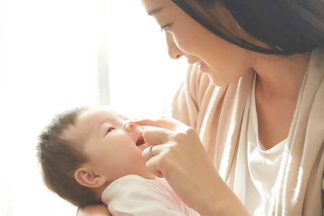 「歯のお手入れや歯みがきは歯が生えてからで大丈夫」という考えは間違いではありません。歯が生えるまでは、歯みがきの準備期間と考え、スキンシップを心がけることをおすすめします。