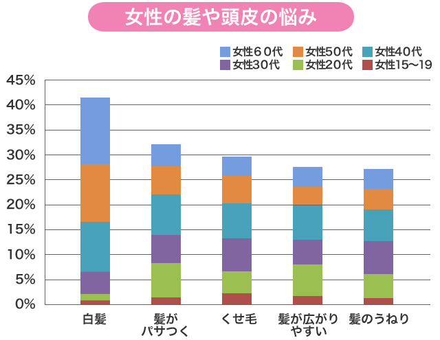 サンスターが実施した「髪や頭皮の悩み」についての調査によると、女性では白髪やくせ毛など髪に関する悩みが上位に挙がるのに対して、男性では頭皮があぶらっぽい、汗をかきやすいなど頭皮の悩みも。