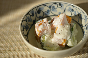 ④かぼちゃときゅうりのカリウムが年末年始に摂りすぎた塩分をスムーズに排出。ヨーグルトのプロバイオティクスが胃腸を整える。