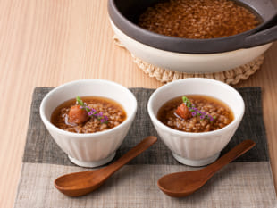 ⑤栄養豊富だけど固いイメージがある玄米も、お粥にするとふんわり。