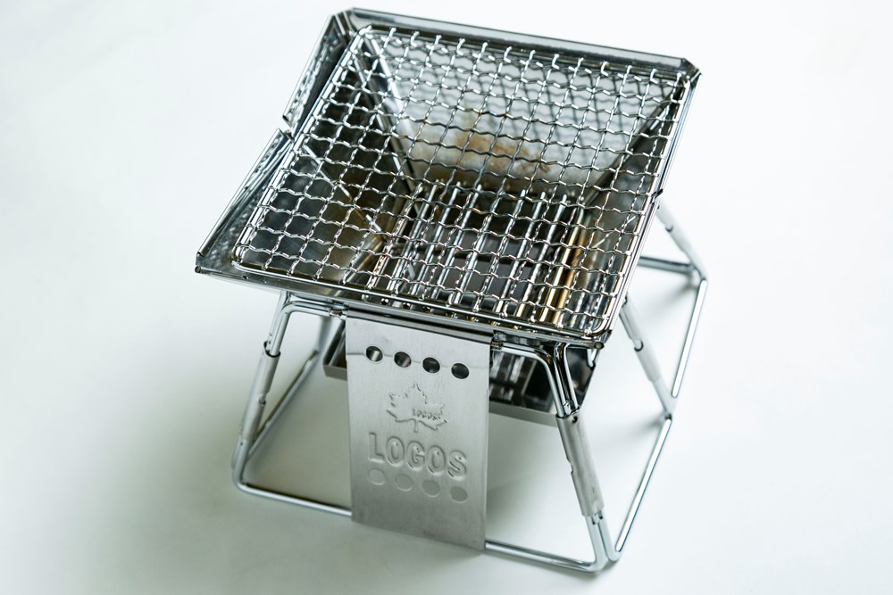 グリルは、火を使う料理の必需品。やはりここでも、コンパクトにたためるものが持ち運びしやすくおすすめです。お湯を沸かす程度なら、畳むとタバコ1箱分ほどのサイズになるコンロもありますが、炭を使って本格的に楽しむならもう少し大きめがベター。