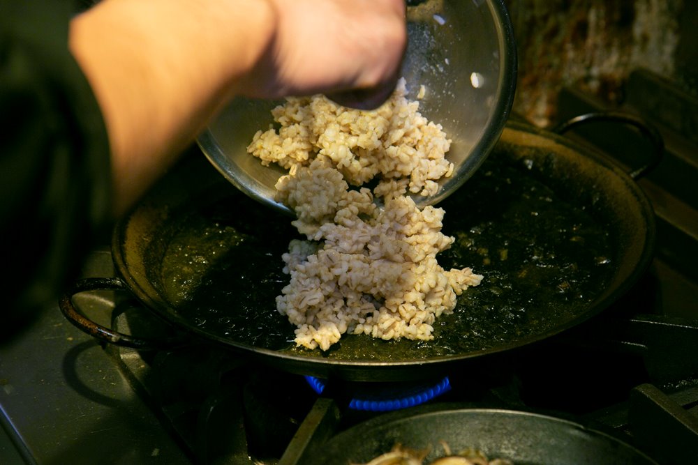 マリスケリア ソルでも不動の定番。「健康道場 玄米ごはん」バージョンは通常のパエリアと違う工程で、濃厚な魚介の出汁とイカの風味を堪能しながらも玄米の風味をしっかり楽しめるよう仕上げます。