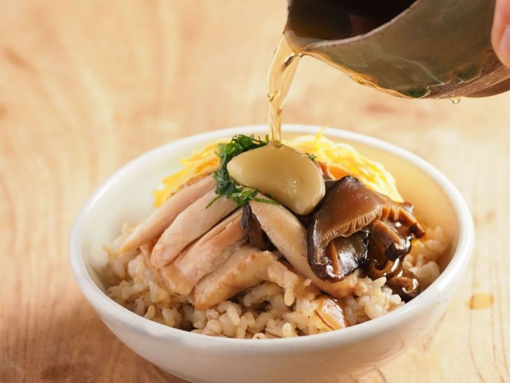 【ポイント】冬の鶏飯は出汁をアツアツにして注ぎましょう。