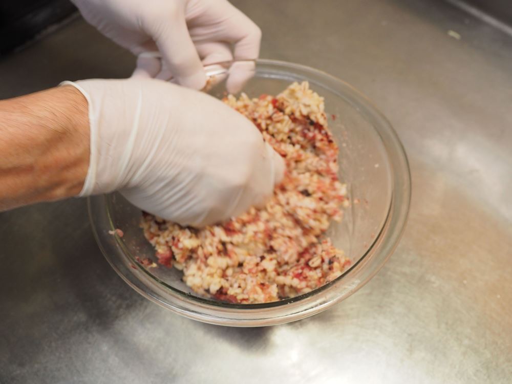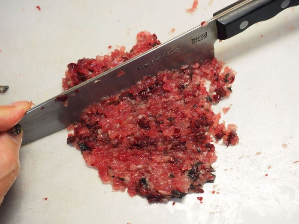 【ポイント】カツオは細かく刻んで粘りを出しましょう。
