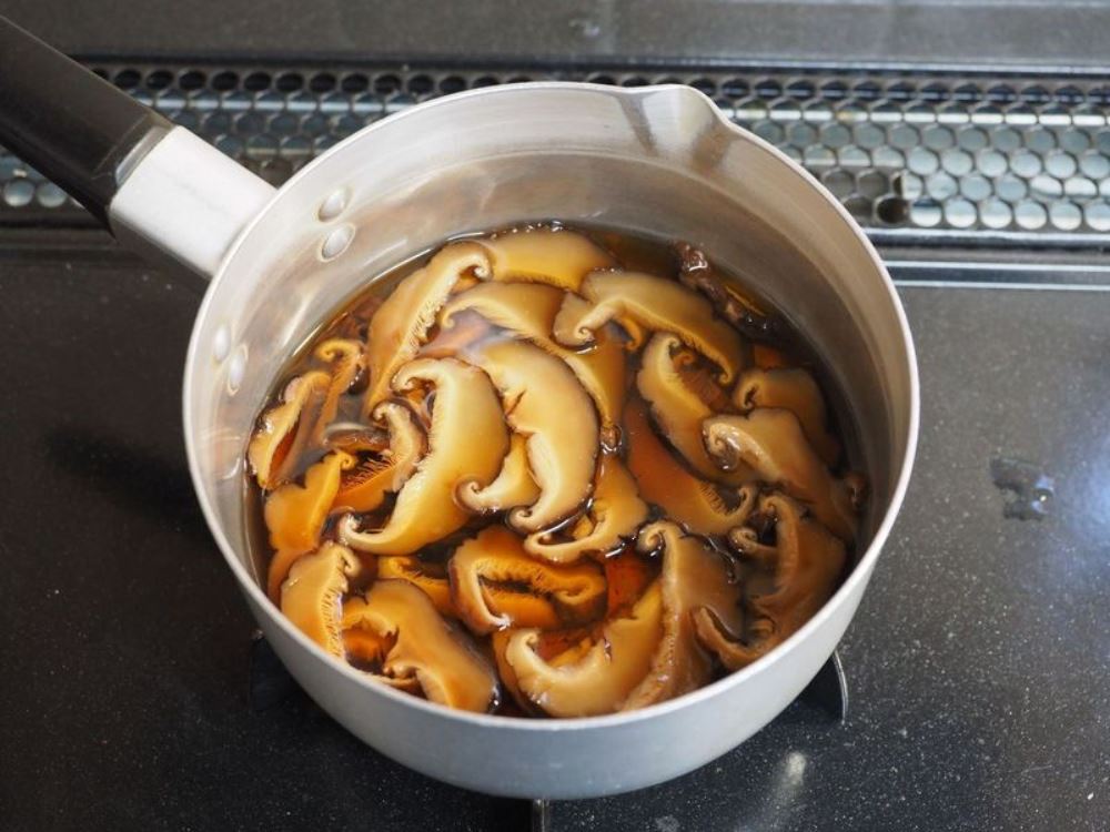 【ポイント】鶏飯の甘い風味の決め手がこの手順。干ししいたけをじっくり煮ましょう。