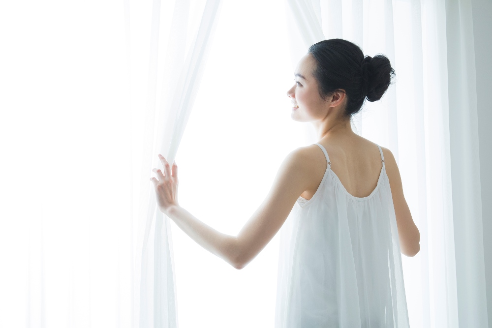 起きてすぐに太陽の光を浴びると、体内時計のリズムがリセットされ、その15~16時間後に眠気が起こるといわれています。日光によるリセットが行われないと、寝つきの時間が少しずつ遅れることにつながります。