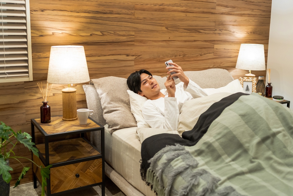 布団やベッドに入ってからスマホでゲームやメールなどをすると、光の刺激で目が覚めてしまうので、避けたほうが良いでしょう。