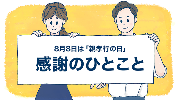 「あの人に伝えたい!感謝のひとこと」。日頃なかなかいえない「感謝の気持ち」を、クラブサンスター会員のみなさんにお寄せいただきました。今回は、8月8日の「親孝行の日」に向けて、父母や義父母に伝えたい気持ちを、2021年6月9日~6月14日に募集。たくさんの投稿の中から、運営スタッフのヒカルが心を込めて選びました。