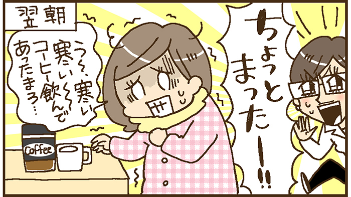 朝や仕事中、冷えを感じたらすぐに熱々のホットコーヒーでカラダを温めるのが習慣です。