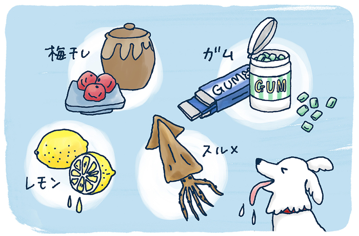 唾液が出やすい食べ物というと、まず思い浮かべるのは梅干しやレモンなどの酸っぱいもの。カラダが「酸味=毒」と判断し、その毒性を薄めようとして、味覚・唾液反射と呼ばれる反射性の唾液分泌が起こります。