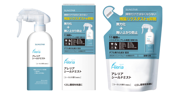 さらに、「ハウスダスト対策として掃除等を行っているが、すべてを取りきれているわけではない」と感じている人は84.1%も(サンスター調べ)。どんなに頑張っても思ったほどの効果が出なくて「私のせい?」「まだお掃除が足りない?」とストレスを抱えてしまったり、毎日続くお掃除に疲れきってしまったり…。そんな、気持ちにも悪影響を及ぼす「残留ハウスダスト」をなんとかしたい!そんな思いからサンスターが開発したのが、新製品の「アレリア シールドミスト」です。