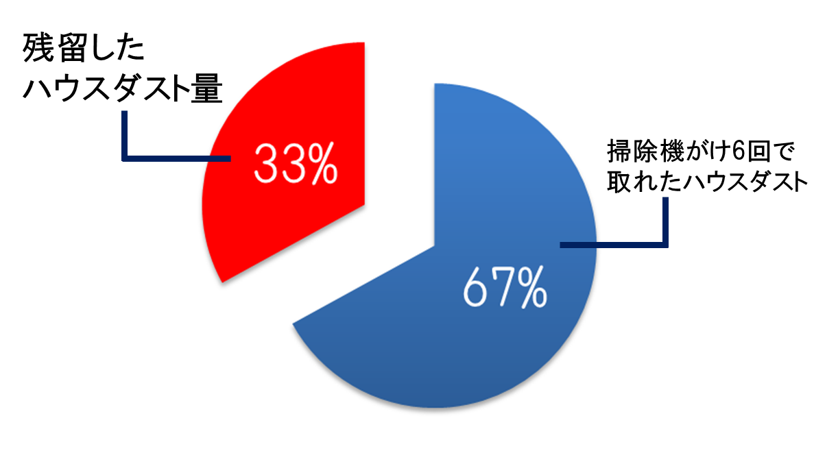 など、すべてを実行するにはかなりハード。しかも、サンスターが実際にカーペットにハウスダストを散布して、ガイドラインどおりに丁寧な掃除機がけをくりかえし6回行った後にハウスダストの量を測定する実験をしたところ、なんと33%ものハウスダストが残留してしまっていたのです。