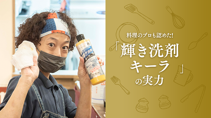 飲食店では、たくさんたまった洗い物は繁盛の証。とはいえ、やっぱり大量の食器や水回りを清潔に保つのは重労働です。そこで水回り向け洗剤「輝き洗剤キーラ」でお皿、カトラリーからグラス、さらにシンク周りも一気に片付けていただきましょう。