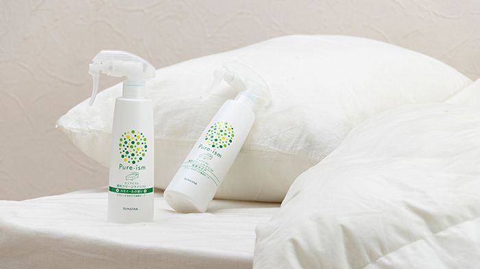 布団や枕、シーツなどにスプレーするだけで、寝具に潜むダニや花粉の対策ができる「ピュアイズム<寝具クリーンケアミスト>」
