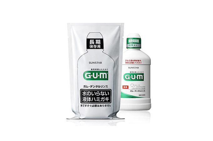 歯周病菌とたたかうガムから、防災備蓄として5年間の長期保存ができ、災害時に水がなくても歯が磨ける液体ハミガキ「長期保存用 ガム・デンタルリンス」が登場しました!