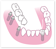 一方で、インプラント治療は外科手術が必要なため歯槽骨や歯ぐきの治癒に時間がかかることや、健康保険が効かないので治療費が高額(一歯あたり30~50万円程度)になるというデメリットもあります。また、歯槽骨の状態や全身の健康状態によっては治療ができない場合もあります。 インプラントは人工歯ですのでムシ歯になることはありませんが、インプラント周りの歯ぐきや歯槽骨は生きていますので、歯周病(インプラント周囲炎)にはかかることがあります。自分の歯以上に丁寧なプラークコントロールを行わなければ、せっかく植えたインプラントが脱落してしまうことにもなりかねません。インプラント治療の成功は、プラークコントロールにかかっているといっても過言ではありません。