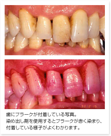 歯石の表面はザラザラしていて、プラークがつきやすい状態になっています。歯石の上に付着したプラークが石灰化すると、歯石はさらに増大していき、歯ぐきを圧迫して悪影響を与えることもあります。