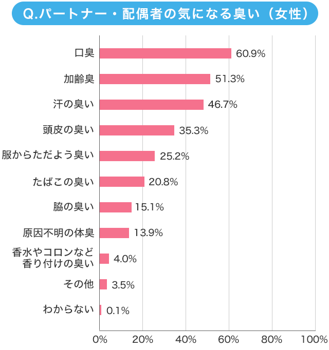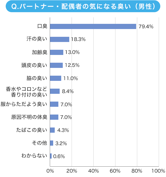 具体的にパートナー・配偶者のどんなにおいが気になるかをたずねてみると、下のような結果が出ました。