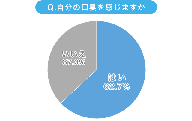 62.7%の人が「はい」と回答。パートナーの口臭が気になる一方で、半数以上の人が自分の口臭も気にしていることがわかりました。
