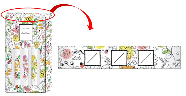 さらに、ハブラシの包装箱の上面には使い始めた日付を入れることができるので、いつから使っているのか、次にいつ交換するのかが分かるようになっています。