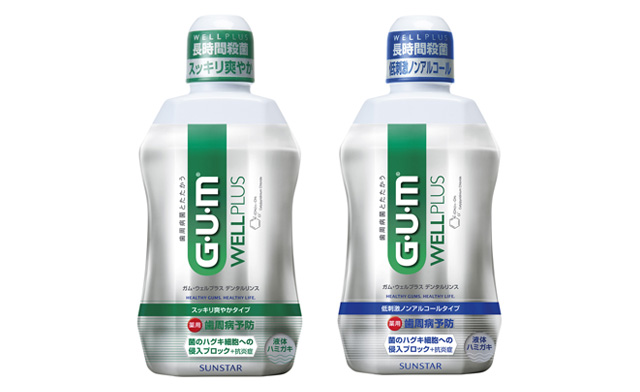 「ガム・ウェルプラス デンタルリンス」は「スッキリ爽やかタイプ」と「低刺激ノンアルコールタイプ」の2種類。これまでになかったアプローチで歯周病とたたかうG・U・M新シリーズの力を体験してみませんか?