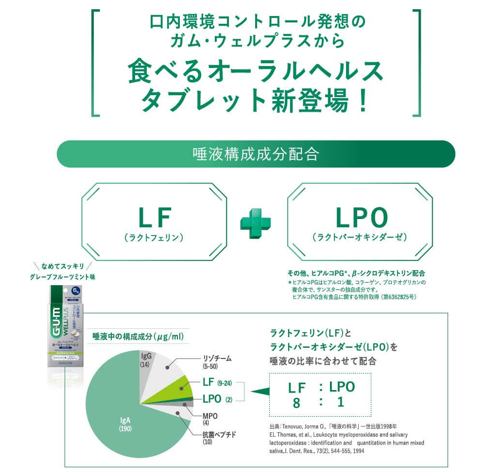 「G・U・M(ガム)」の新シリーズ「WELLPLUS(ウェルプラス)」のデンタルペースト、デンタルリンスに続き、今回は「ガム・ウェルプラス 食べるオーラルへルスタブレット」 の魅力をご紹介します。