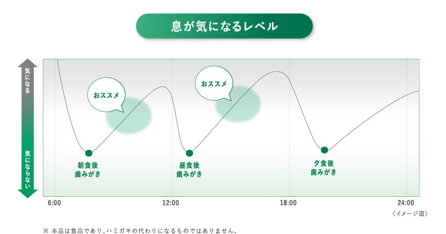 時間が経つにつれて息が気になる食事と食事の間の時間帯に活用するのが最適。