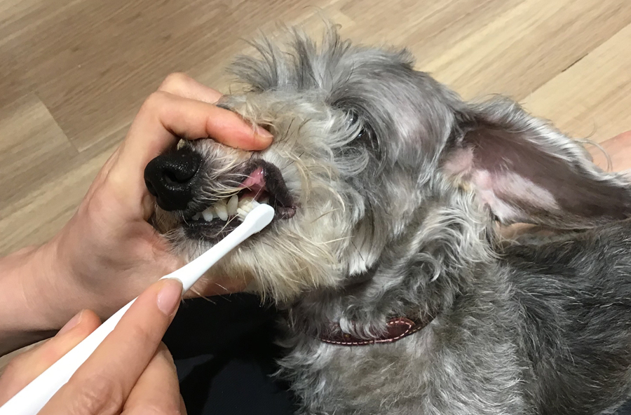 「こうだから歯みがきが必要なんだよ、というのは言葉では伝わりません。犬が受け入れられるやり方として、おいしいペーストを使ってあげる。犬たちには歯みがきの時間が楽しいおやつの時間になるんです。そこで同時にスキンシップを取って、慣れさせてあげてくだい」