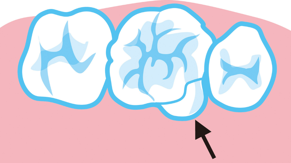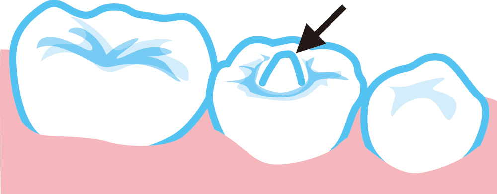 臼歯の内側に余分なでっぱりができている形です。そのため、でっぱりとの間に溝ができ、その部分がむし歯になりやすいので、溝を意識してみがくことが大切です。それほど珍しいわけではなく、お手入れは基本的なブラッシングで問題ありません。定期的に歯科医院でチェックしてもらえばなお安心でしょう。