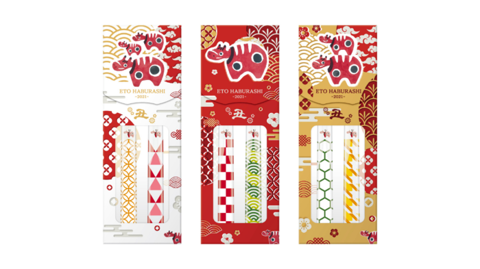 デザインは6種類あり、下の写真のように2本入り×3箱で1セット(6本)での発売となります。ご家族の新年用としてはもちろん、クリスマスプレゼントや年末年始のちょっとしたご挨拶に、またお年玉と一緒に渡すなど、2021年の健康と福を呼ぶプレゼントとしてもぴったり!数量限定、通信販売のみでの発売となりますので、気になった方は早めにチェックしてみてくださいね。