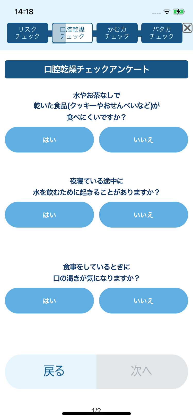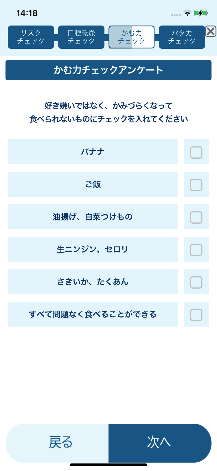 お口の機能をチェックするには、アプリ「おくち元気チェック」を使ってみては?とても簡単にセルフチェックできますよ。