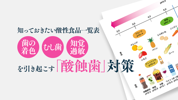 第三の歯科疾患といわれている「酸蝕歯(さんしょくし)」になる人が増加しています。その原因のひとつに挙げられているのが飲食物に含まれる酸。そこで、リスクの高いとされる食品と対策をまとめてみました。