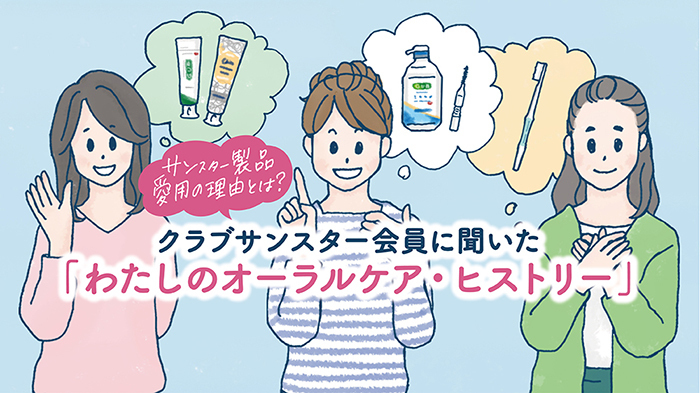みなさんは普段、お口の健康をどれくらい意識していますか。自分にあったケアができていますか。今回はサンスター製品をご愛用いただいているクラブサンスター会員3名にご協力いただき、オーラルケアの意識が高まったきっかけや愛用アイテムについてインタビュー。それぞれの“オーラルケア・ヒストリー”に迫りました。