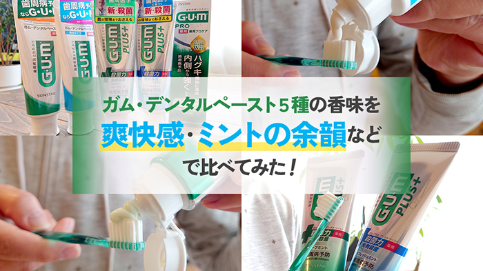ちなみに筆者は5種類のペーストを試してみた結果、歯みがき中の香味では『歯周プロケア』、みがいたあとの余韻は『ガム・プラス リフレッシュミント』が、新たなお気に入りになりました。もちろん自分のお口の状態にあわせた機能を大切することは大前提。そのうえで、ちょっと遊び心をきかせたペースト選びもぜひ試してみてくださいね。