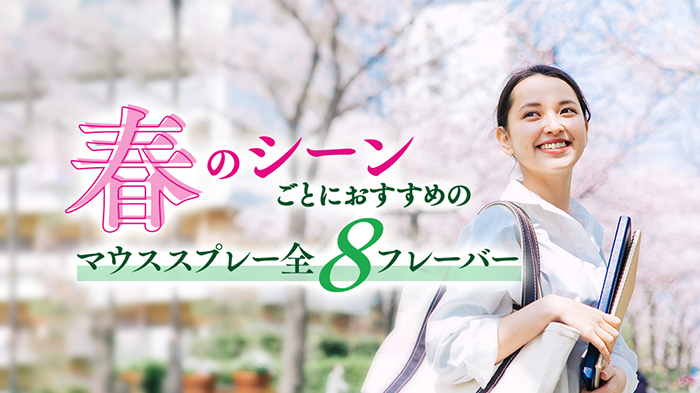 外出の機会が増えてきた今日この頃。これから春に向けて、イベントごとが増えにぎやかな季節になる中、外出時にふと自分のお口のニオイに気づく…なんてこともあるはず。そんな時の口臭ケアにおすすめなのが「オーラツーミー マウススプレー」(全8種類、容量:6mL、250円[税込275円])です。春の外出シーン別に、おすすめのフレーバーをお伝えします。