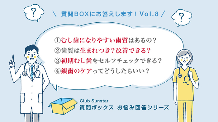 クラブサンスターに送ってくださったみなさんの投稿の中から、今月は「むし歯」に関するものをピックアップしました。「生まれつきむし歯になりやすい歯質ってあるの?」「“初期むし歯”を自分で確かめる方法はある?」「治療した銀歯、どうケアしたらいいの?」といったお悩みや質問に歯科衛生士の市川洋子さんに回答いただきました。