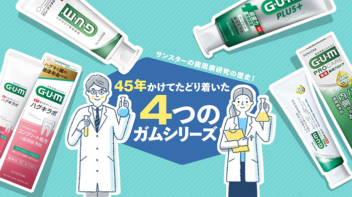 歯周医学から生まれた最新のアプローチで歯周病菌とたたかうトータルケアブランド「G・U・M」(ガム)シリーズ。2023年9月には新商品「ガム・ラボシリーズ」を発売するなど、歯周病リスクから皆さまのお口の健康を守るため、日々進化をつづけています。この記事では、サンスターが研究スタート以来45年もの歳月をかけて、どのように歯周病への理解を深めてきたのか、その歩みを紐ときます。