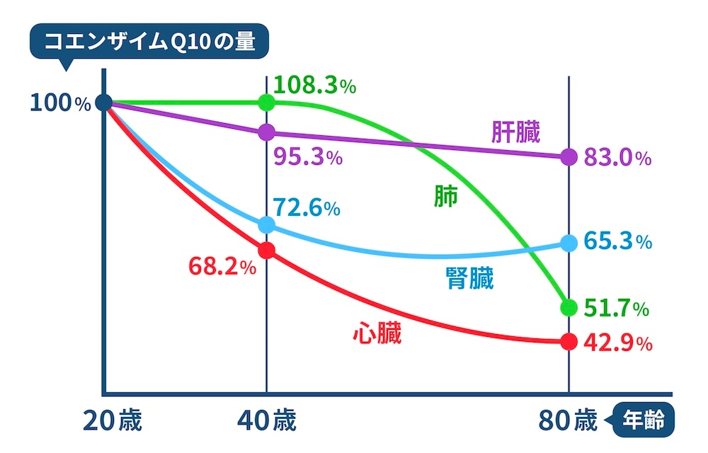 【体内各器官でのコエンザイムQ10の減少】