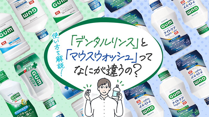 一方で、サンスター会員のみなさんから液体タイプのオーラルケア製品について、「使い方をもっとよく知りたい」「どれを選べばいいのか、わからない」といった声も寄せられています。そこで、ここからはサンスター製品の「デンタルリンス」と「マウスウォッシュ」、それぞれの違いや使い方について見ていきましょう。