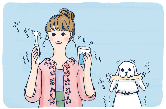 A. ブラシをお口に入れてからスイッチを入れると飛び散りを防止できます。また、電動ハブラシ専用のジェルタイプのハミガキなら、飛び散りにくくお口の中にさっと広がり、泡立ちも控え目。みがきやすいのでおすすめです。