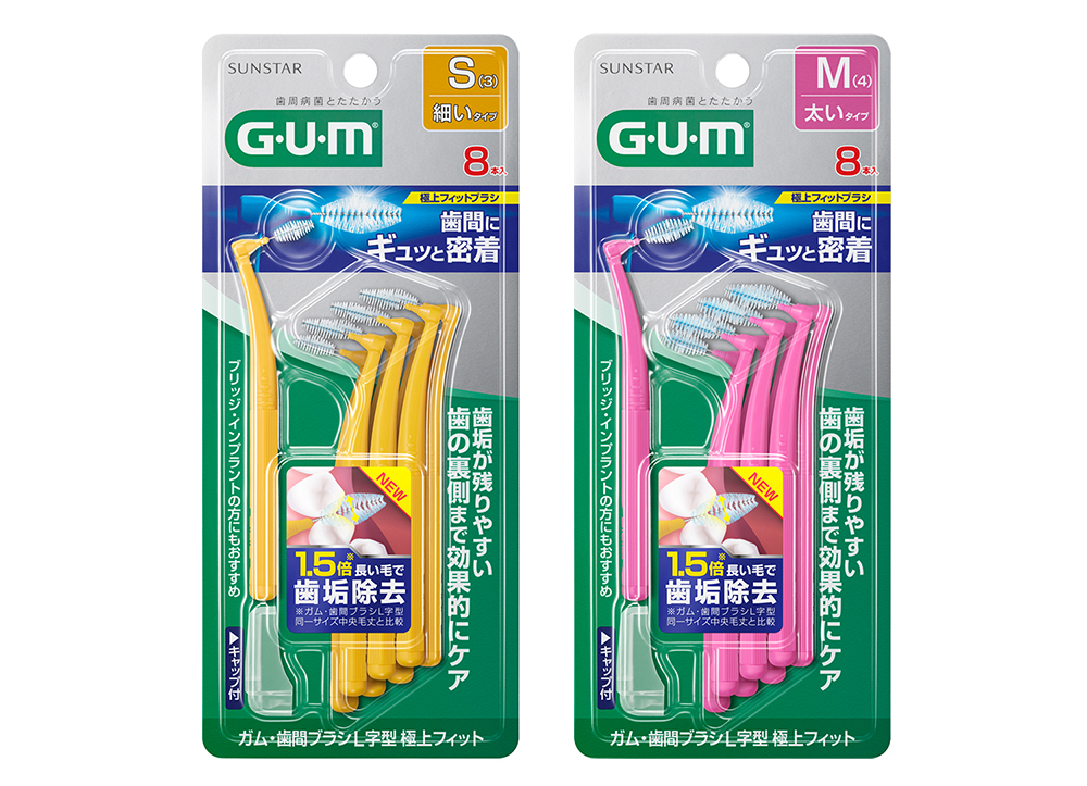 今秋、ガムシリーズに新たに加わった「ガム・歯間ブラシL字型 極上フィット」は、独自形状のブラシが広い歯間部や歯の裏に密着してプラーク(歯垢)を効率的に除去します。
