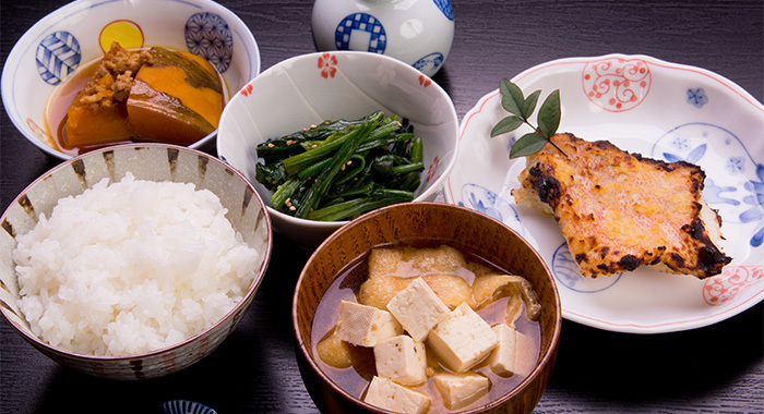 「一汁三菜」(主食・主菜・副菜・汁物)という構成が伝統の日本食は、魚や豆腐、納豆などが多く、野菜も豊富に摂れるヘルシーさ、素材の味を引き出した絶妙な味わいなどが特徴です。