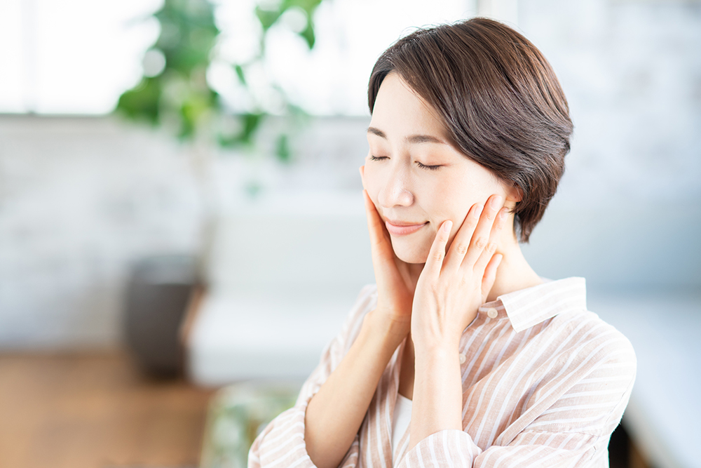 特に化粧水をたっぷり肌に浸透させて、美容液などが浸透しやすくなる土台を作るのが大切。化粧水は2~3回に分けて、1分ほど時間を開け、浸透させながらつけていくと良いでしょう。手に肌がくっつく感じになったら、しっかり保湿されたサインです。その後、美容液や乳液を使うとしっかり肌に入ります。