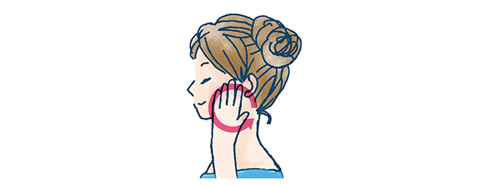 頬の部分を手の平でぐるぐるとマッサージし、耳下腺(※)に刺激を与える方法です。長期間お口から食事をしていないことが理由で唾液分泌が低下している場合は有効です。