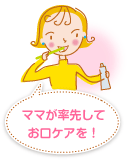 ママや家族がお口のケアに積極的に取り組む姿を見て、子どもは自然にその大切さを学び、自分で歯を守る習慣を身につけていきます。歯みがきをしなさい!と口うるさく言わなくてすむように、まずママが率先してお口のケアの習慣を身につけましょう。
