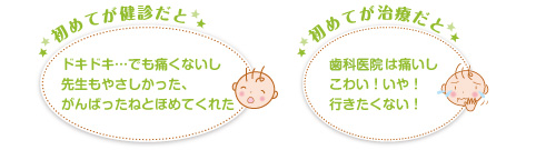 初めての歯科医院がむし歯の治療では子どもに苦手意識がめばえます。1歳ごろになって6~8本の前歯が生えてきたら歯科健診へ行きましょう。ママがビクビクしすぎると子どもに伝わってしまうので、ママはリラックスしましょう。