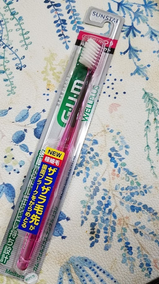私のお気に入りハブラシは、昨年3月に発売となった、G・U・M ウェルプラスのデンタルハブラシです。(#466ふつうの4列)みがいた後の歯の表面のツルツル感は一度味わっていただきたいです。