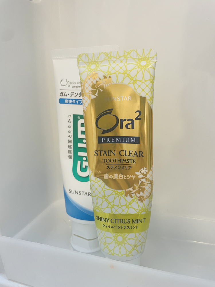 私の推しアイテムは「オーラツー プレミアム ステインクリア ペースト」のシャイニーシトラスミント味✨いつも夫はガムのハミガキ、私はオーラツーを愛用中💛